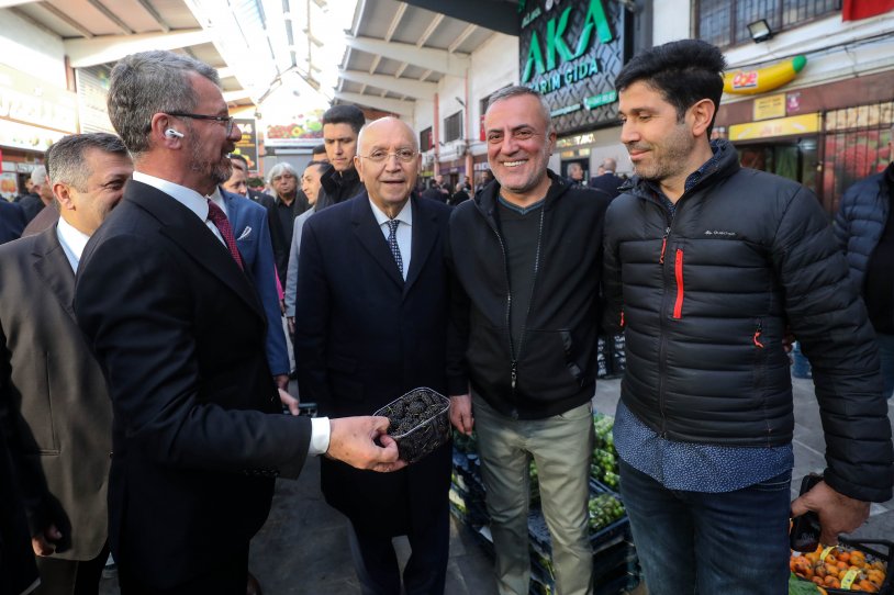 Yenimahalle Belediye Başkanı Fethi Yaşar milletvekili adaylarıyla birlikte hal esnafıyla buluştu