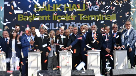 ABB Başkanı Mansur Yavaş’ın ev sahipliğinde yeni Balık Hali ve Başkent İlçeler Terminali’nin açılış töreni gerçekleştirildi. Törene, CHP Genel Başkanı Kemal Kılıçdaroğlu, Millet İttifakı partileri genel başkan yardımcıları, milletvekilleri, meclis üyeleri, ilçe belediye başkanları, sivil toplum kuruluşu temsilcileri, bürokratlar ve vatandaşlar katıldı.