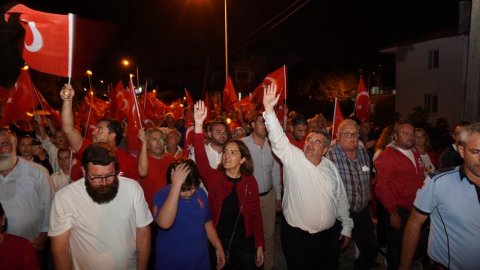 Binlerce vatandaş, ellerinde bayraklar ve meşalelerle Cumhuriyet Meydanı’na yürüdü.