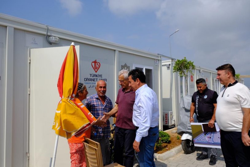 Bodrum Belediye Başkanı Ahmet Aras, Hatay Arsuz Dostluk Kenti’ni ziyaret ederek kampta yapılan son çalışmaları yerinde inceledi.