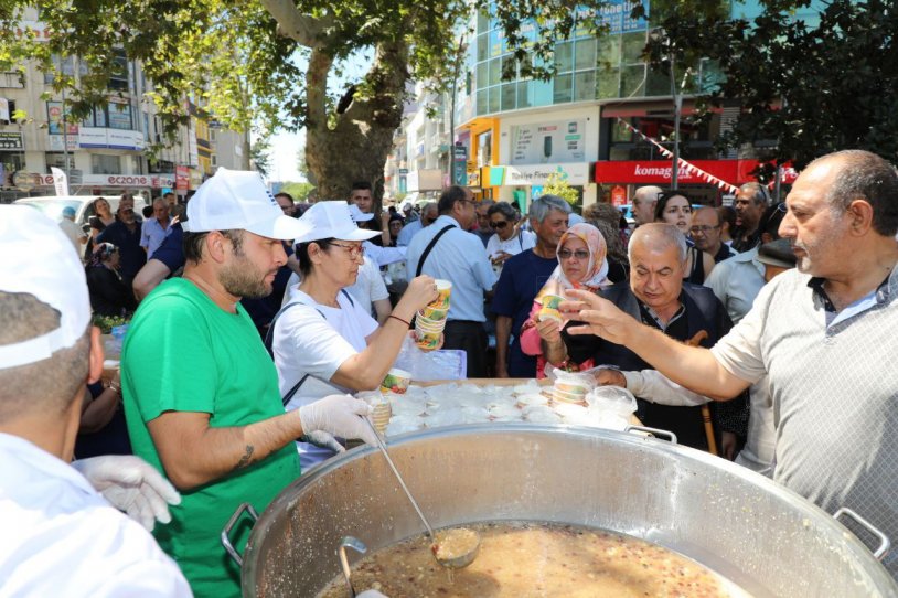 Edremit Belediyesi, Muharrem ayı dolayısıyla aşure hayrı düzenledi. Cumhuriyet Meydanı’nda 15 bin kişilik aşure dağıtılırken Edremit Belediye Başkanı Selman Hasan Arslan, vatandaşlara aşure ikramı yaptı.