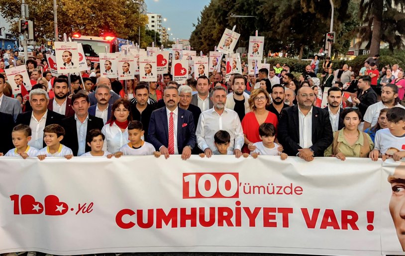 Bayraklı Belediyesi, hafta boyunca süren Cumhuriyet kutlamalarını 10 bin kişilik 100. yıl korteji ile taçlandırdı.