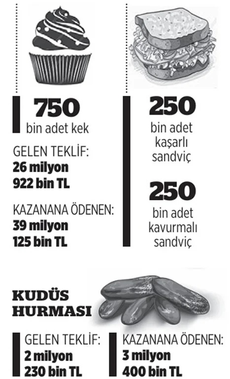 Raporda yer alan bilgilere göre belediye, Ramazan ayında 3 milyon 400 bin TL’ye Kudüs hurması satın aldı. Oysa bir başka firma 2 milyon 230 bin TL teklif vermiş. Belediye 1 milyon TL’den fazla ödeme yapmış.